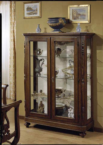 Argentiera 2 porte bassa con vetri laterali ripiani legno