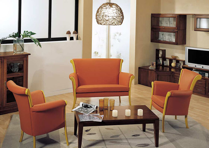 Versione: Laccato Invecchiato colore Giallo, Tessuto Ecopelle Colore Arancio