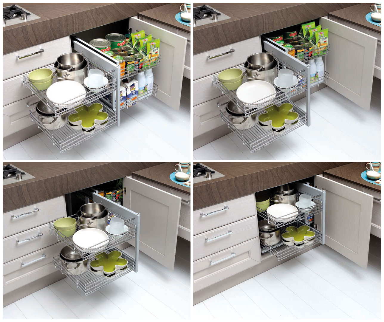 I cestelli estraibili ti aiutano a sfruttare lo spazio fino all'ultimo centimetro. Con Lube puoi scegliere gli elementi adatti a sfruttare al massimo tutto lo spazio.