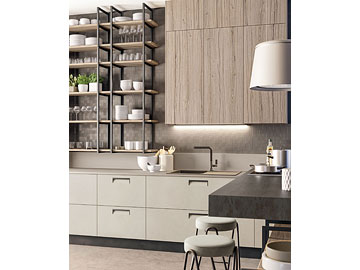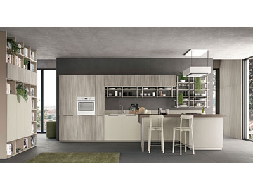 Con la linea di cucine moderne Round Bridge, LUBE propone una filosofia green, che si concretizza nelle ante realizzate in PET: materiale totalmente rinnovabile e riciclabile. Le superfici innovative e performanti pensate per l'ambiente cucina si accostano ad una particolare attenzione per le tematiche ambientali, in un equilibrio vincente tra professionalità e rispetto per l'ambiente.