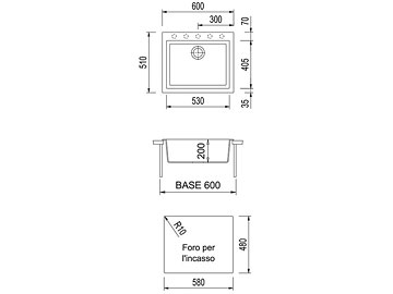 Disegno tecnico lavello Plados mod. ON6010