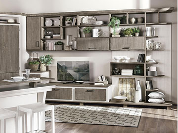 Rebecca è una cucina dall'anima classica in finta muratura interpretata in chiave contemporanea, con ante impiallacciate in Rovere, spessore 24 mm. Composizioni ricche e dal forte carattere, che lasciano rivivere l'arte degli antichi maestri del legno.