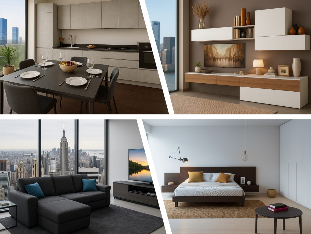 La promozione comprende 4 elementi fondamentali per arredare tutta la casa: cucina, camera da letto, soggiorno living e salotto, selezionati per offrire un equilibrio ideale tra design, funzionalità e qualità costruttiva.