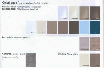 I fianchi sono con finitura standard ( madreperla o sabbia ) come da campionario visibile sfogliando le foto a lato ...per finiture dei fianchi laccati come anta, nella versione opaco +euro 180,00 ... nella versione lucida +euro 270,00