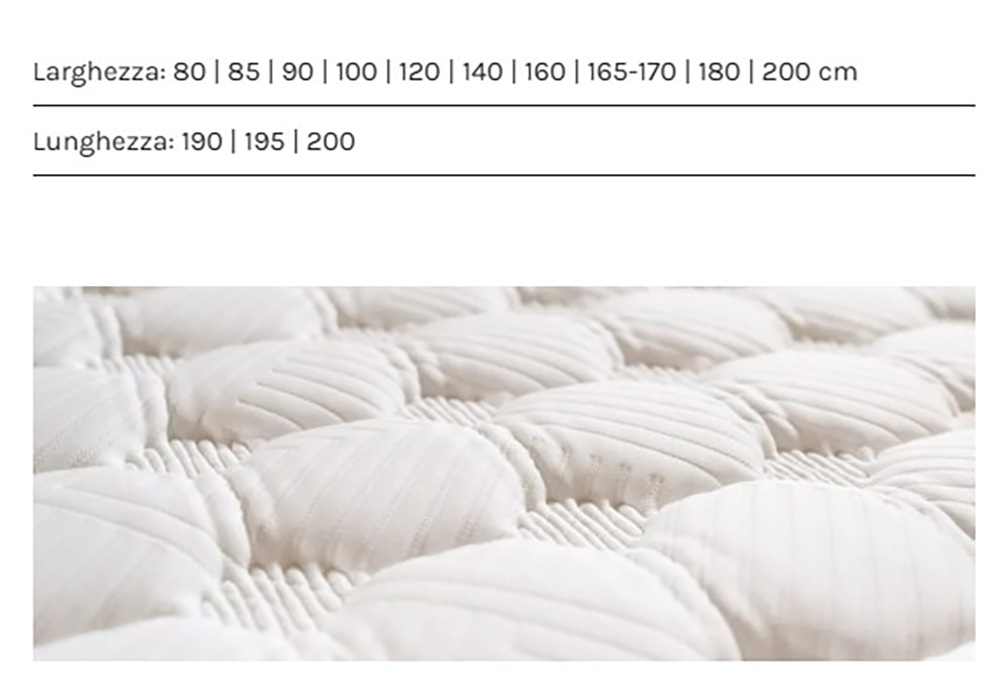 Il prezzo che si vede e' riferito alla misura da cm. 160 X 190-195-200 ma e' disponibile in moltissime misure, vedi scheda allegata tra le foto