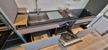 Il lavello e' in inox della Franke serie ALL IN dove sono compresi tutti gli accessori dai taglieri a vaschette ed e' integrato sotto top