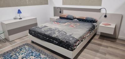 Letto con contenitore rialzato e comodini sospesi ( luci a led integrate opzionali )