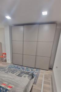 Armadiatura scorrevole completa di attrezzatura interna con cassetti interni, raster porta maglioni e tubi con servetto per la discesa degli abiti dal livello superiore. ILLUMINAZIONE a LED integrata con sensore di presenza